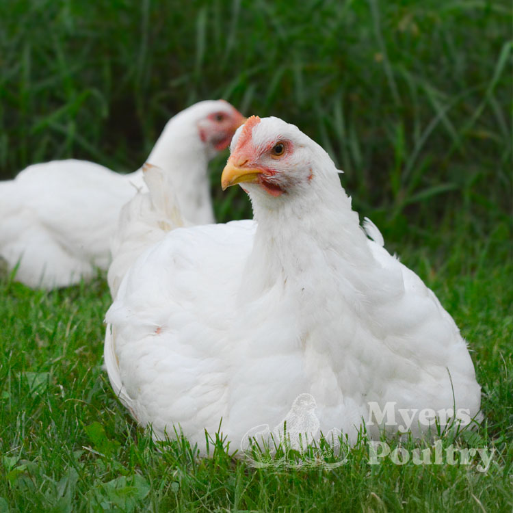 The Cornish Cross is the most common meat chicken breed raised in the United States. It is a fast-growing broiler bred for efficient feed conversion and a high proportion of breast meat, typically reaching a processed weight of 4.5 to 6 pounds in 6 to 8 weeks.