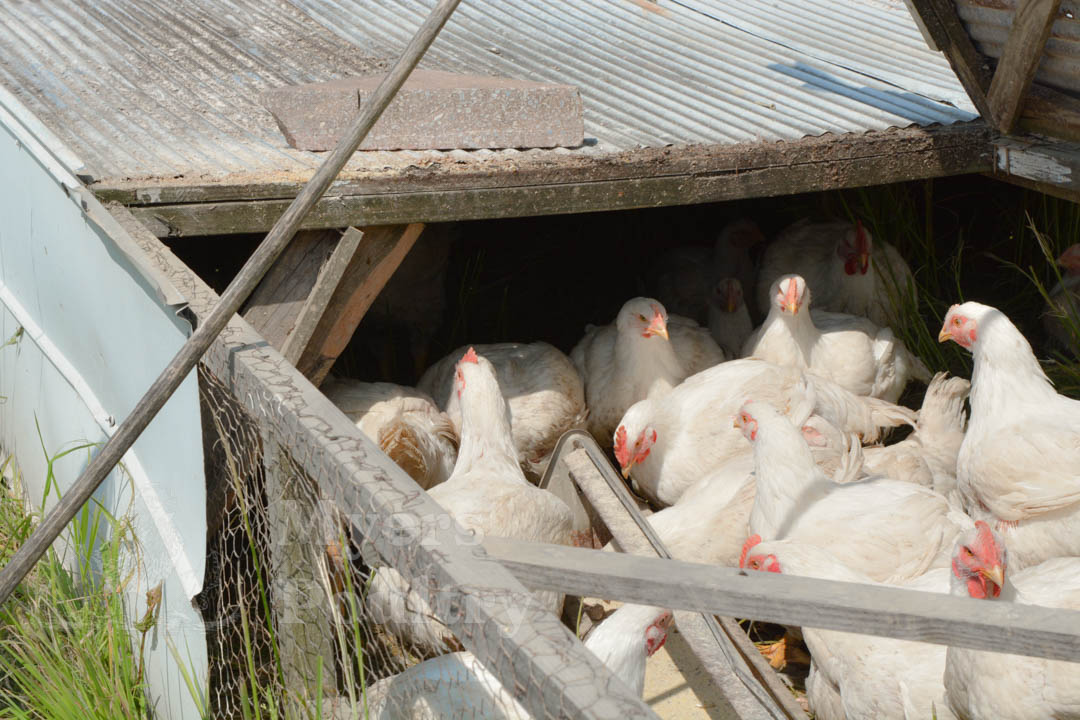 | Birds appear lethargic or inactive | Dehydration, heat stress, or illness | Water availability, temperature, signs of distress | Add waterers, provide shade and airflow, and monitor closely |