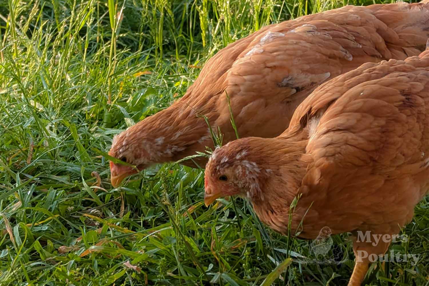Alternative hybrid broilers are slower-growing meat chickens developed as a middle ground between Cornish Cross broilers and traditional or dual-purpose breeds. Common examples include Red Bro, Kosher King, Red Sasso, and Freedom Ranger.