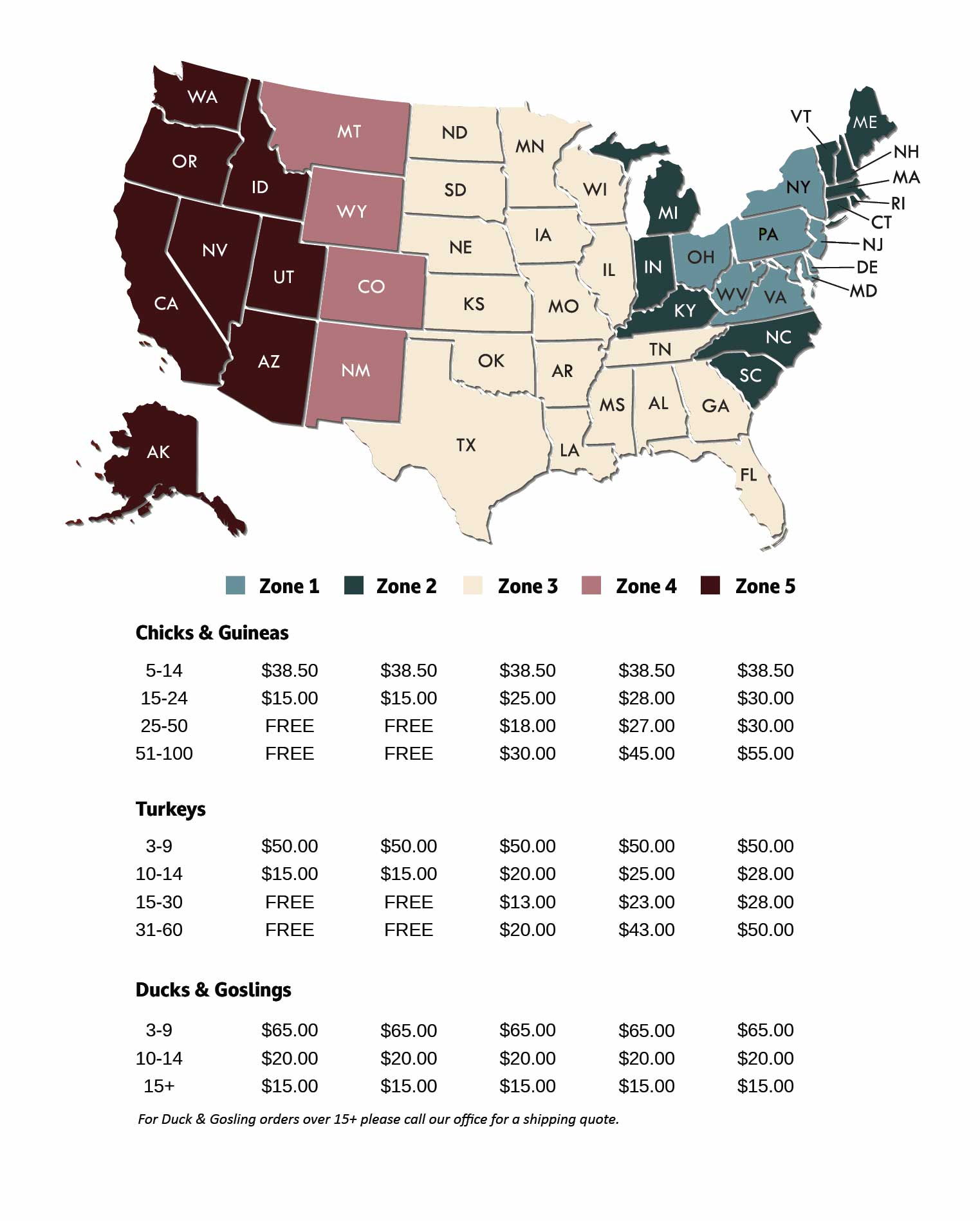 Poultry is hatched Monday, Tuesday, and Wednesday. Once shipped we cannot control the Post Office shipments. If you want your birds to go to a specific post office please put the following in the shipping address field: